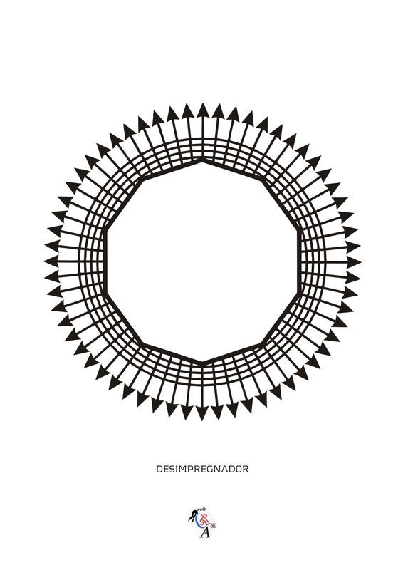 En radiónica el gráfico del sol se representa con dos circunferencias concéntricas de 90 a 100 mm de diámetro con un punto central. En aquella época se hacía con tinta china y compás, en este caso he realizado uno de 10 cm que podéis bajar aquí para imprimirlo en cartulina (recortáis por la línea de puntos). Después de imprimirlo y recortarlo deberéis de valorizarlo con el triple decágono (se pendulea sobre el testigo hacia la derecha hasta que pare). Como curiosidad os cuento que en aquella época era habitual valorizar los testigos colocándolos unos segundos entre dos piezas de nailon blanco.